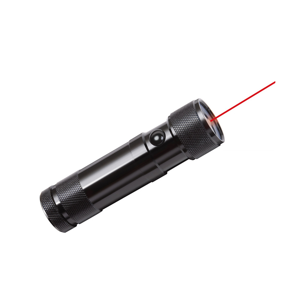 Vreckové LED svietidlo s bodovým laserovým ukazovadlom s dosahom 50m • napájanie: 3 batérie typu AAA LR03 • materiál: kov • doba svietenia: 12 h • dĺžka: 11 cm • priemer: 3 cm • hmotnosť: 100 g