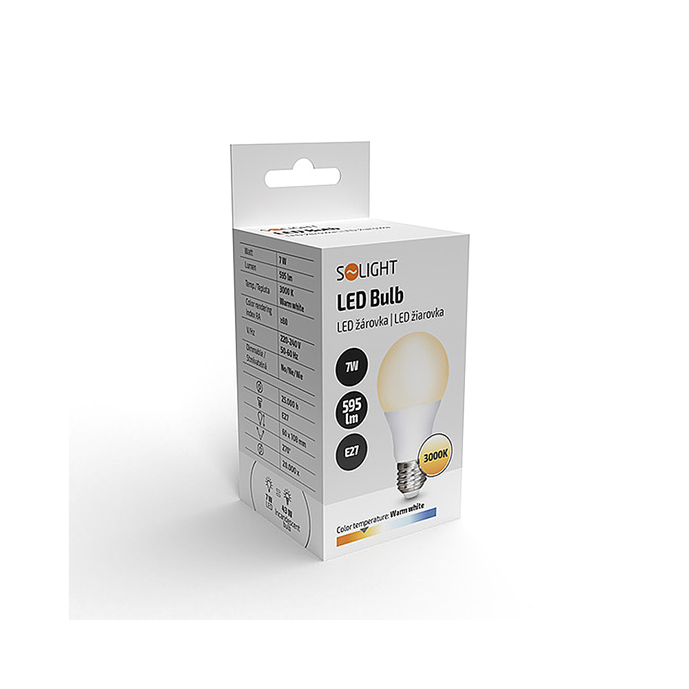 Žiarovka LED E27 s výkonom 7 W ponúka svetelný tok 595 lúmenov a teplé biele svetlo s teplotou 3000 K. Je vhodná na každodenné osvetlenie v domácnosti - napríklad v spálňach, chodbách alebo detských izbách, kde vytvára príjemnú a neagresívnu atmosféru. Klasický tvar umožňuje jednoduchú inštaláciu do väčšiny stropných a nástenných svietidiel.