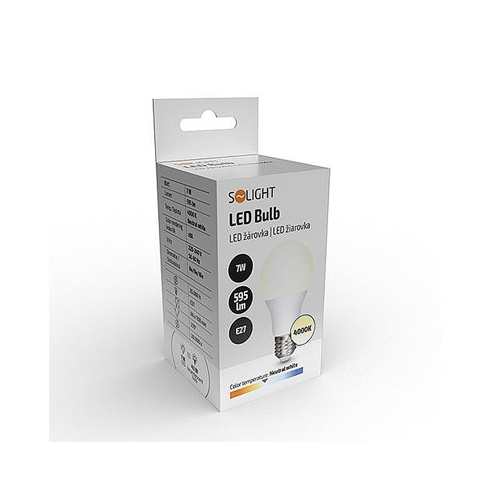 Žiarovka LED so spotrebou 7 W a neutrálnym bielym svetlom (4000 K) je ideálnou voľbou na každodenné osvetlenie v domácnostiach a kanceláriách. Ponúka svetelný tok 595 lm, čo zodpovedá bežnej 47W žiarovke. Vďaka okamžitému nábehu a dlhej životnosti 25 000 hodín je praktickým a úsporným riešením. Neutrálna farba svetla je príjemná pre oči a podporuje sústredenie, takže je ideálna napríklad do domácej kancelárie, pracovne alebo kuchyne.