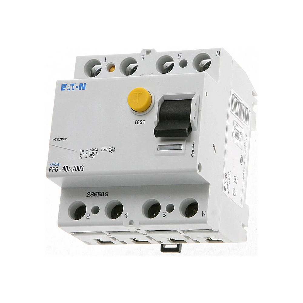 4-pólový prúdový chránič (RCCB) pre trojfázové obvody s citlivosťou 30 mA. Typ A zaisťuje ochranu aj pri výskyte pulzujúcich jednosmerných zložiek (moderné spotrebiče, spínané zdroje). Menovitá zaťažiteľnosť 40 A, skratová odolnosť 6 kA. Ideálny pre rodinné domy a bytové rozvádzače.