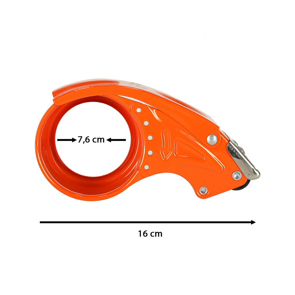 Praktický dávkovač lepiacej pásky - nepostrádateľný doplnok v každom sklade. Vďaka nemu sa balenie balíkov stane oveľa jednoduchšou a rýchlejšou úlohou. Dá sa ovládať jednou rukou. Materiál: kov. Max. šírka pásky: 5 cm. Rozmery: 16x9x6 cm.