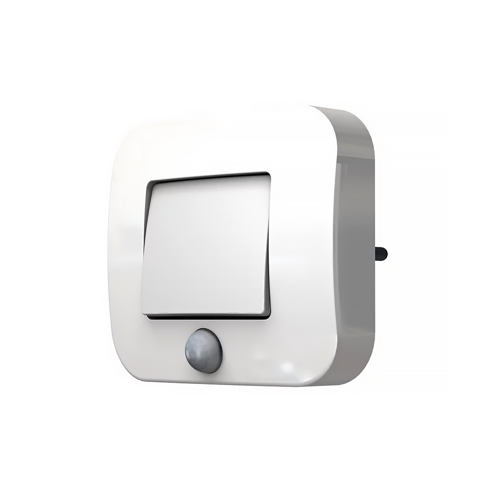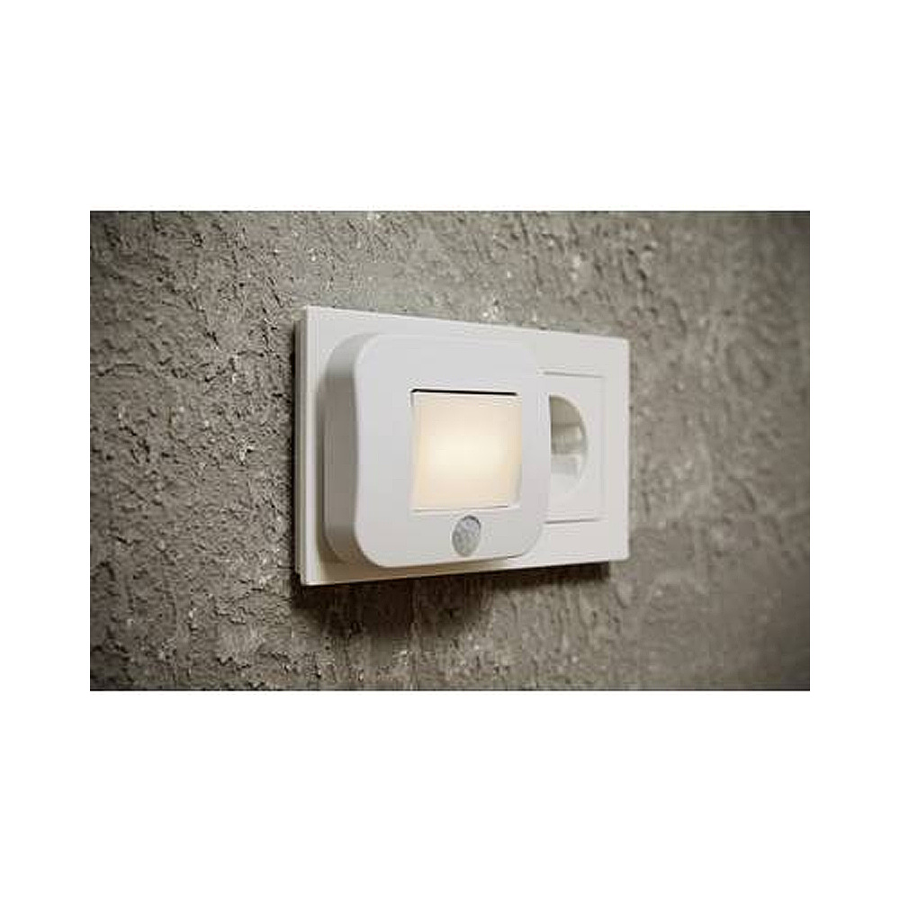 Zásuvkové nočné svetlo s pohybovým senzorom, biele ‒ Teplé biele svetlo (3000K) • svetelný tok: 10 lm • príkon: 0,7 W • rozmery: 84 x 73 x 67 mm