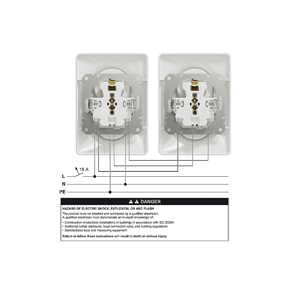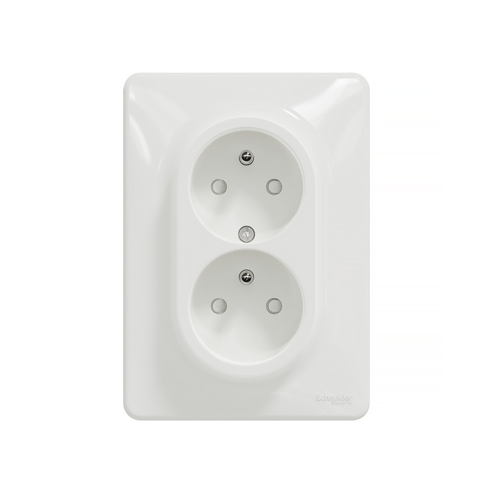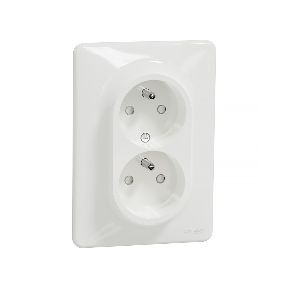 Biela 2-násobná zásuvka Sedna 2x 2P+PE s clonkami a skrutkovými svorkami, zo série Sedna Design od Schneider Electric. Zásuvka má lesklý biely povrch, rozmery: šírka 120 mm, výška 85 mm, hĺbka 45 mm. Dĺžka odizolovania kábla je 13 mm. Má stupeň krytia IP20 a maximálnu povolenú záťaž 3680W a 16A. Vyrobená je z termoplastu so zvýšenou odolnosťou voči UV žiareniu. Prístroj je dodávaný ako celok s krycím rámčekom. Dvojnásobné zásuvky nie je možné osádzať do jednonásobných ani viacnásobných rámčekov, ani do krabíc na povrchovú montáž.