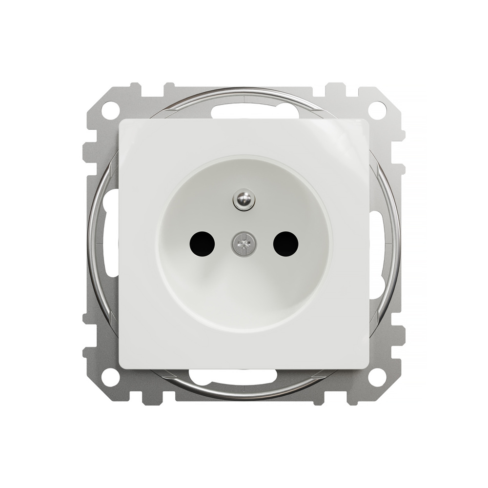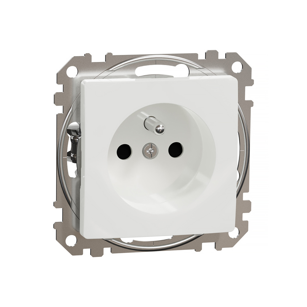 Biela zásuvka Sedna 2P+PE s clonkami a bezskrutkovými svorkami, zo série Sedna Design od Schneider Electric. Zásuvka má lesklý biely povrch, rozmery: šírka 73 mm, výška 73 mm, hĺbka 38 mm a hĺbka presahu 29 mm. Dĺžka odizolovania kábla je 13 mm. Má stupeň krytia IP20 a maximálnu povolenú záťaž 3680W a 16A. Vyrobená je z termoplastu so zvýšenou odolnosťou voči UV žiareniu.